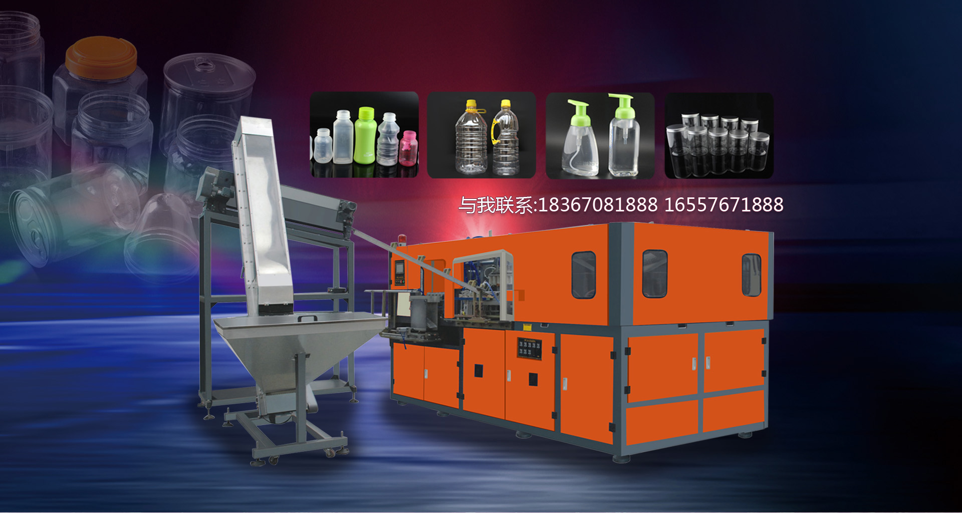 臺輝機械融合國內外的先進技術和理念,專業(yè)設計、生產和銷售三大類,二十多種規(guī)格型號的全自動吹瓶、半自動吹瓶機。適用于生產以PET、PP、PE為原料,從5毫升至40升的各類塑料瓶制品,如:礦泉水瓶、飲料瓶、化妝品瓶、奶瓶、花生油瓶、PET五加侖水桶、太空杯以及燈罩,優(yōu)良的品質、穩(wěn)定的性能、優(yōu)越的性價比,使公司產品不僅暢銷國內市場,并出口到東南亞、中東、非洲以及歐美等國家和地區(qū),深受客戶的好評和信賴。